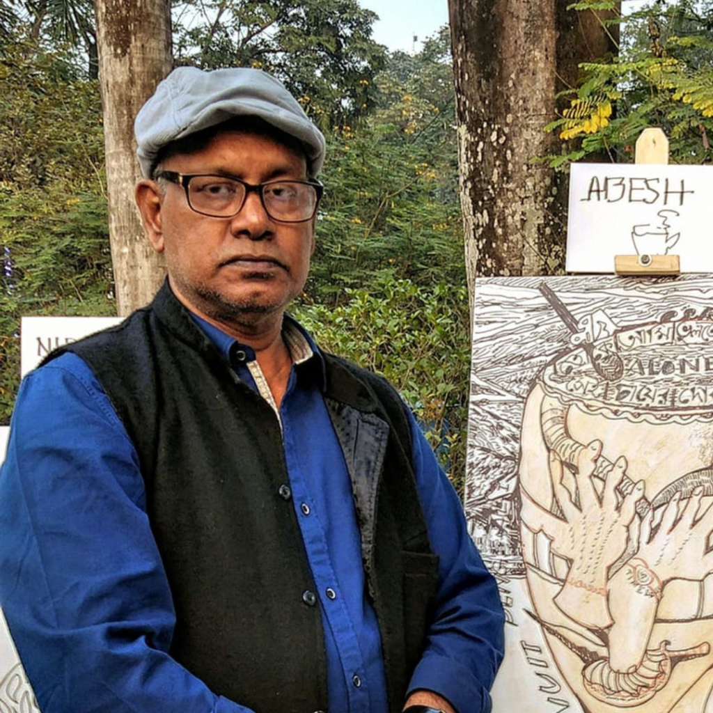 His notable “Wooden House” and “Forest” series, along with his wooden sculptures, have received wide appreciation. Through his art, he thoughtfully depicts the lifestyle and cultural essence of North Bengal on canvas.